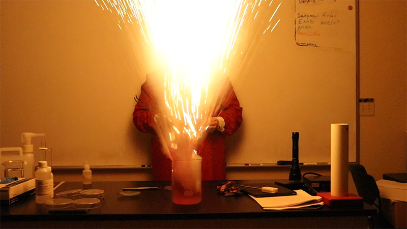 Individuals were treated to sugar cookies, hot chocolate, and pumpkin muffins before enjoying a light-themed demonstration show performed by chemistry instructor Dr. Chad Killblane.